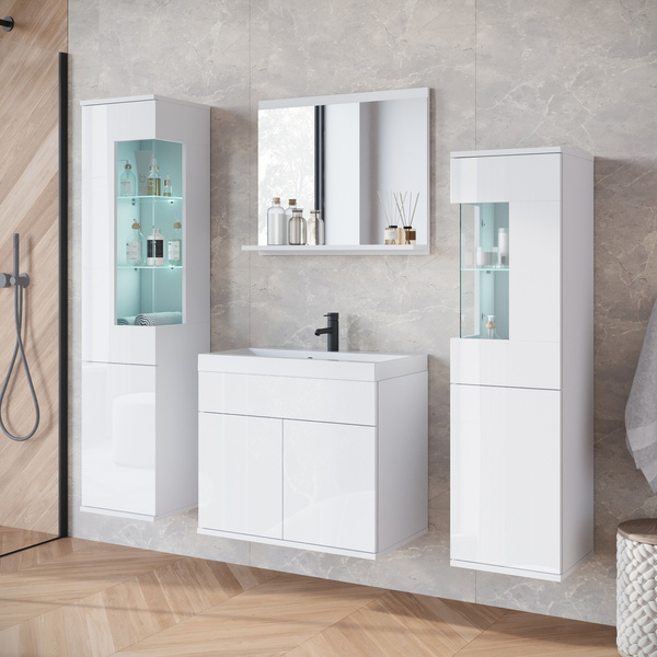 - Szafka pod umywalkę: wysokość 53,4 cm, szerokość 59,4 cm, głębokość 33 cm