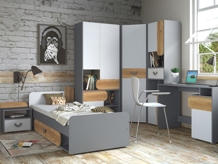 - Obrzeża zostały estetycznie wykończone okleiną ABS. Okleina ABS to sposób na estetyczne wykończenie mebla, dodatkowo gwarantuje odporność na uszkodzenia spowodowane obtarciami.