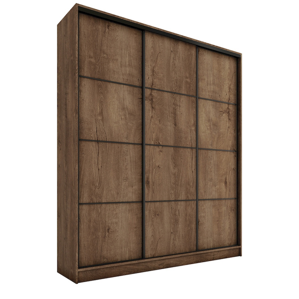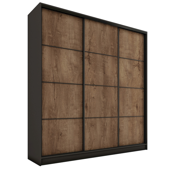 Zestaw mebli QUANT jest propozycją pozwalającą wyposażyć twoją sypialnię marzeń w ponadczasowym loftowym stylu z nowoczesnymi akcentami, wśród których znajduje się oświetlenie LED w zawarte standardzie. W zestawie znajduje się duża szafa o szerokości 250 cm wyposażona w głębokie półki gotowe na umieszczenia elementów garderoby, dodatkowo szafa posiada dwa metalowe drążki znajdujące się w jej centralnej części które sprawdzą się do umieszczenia ubrań o różnej szerokości, a lustro znajdujące się na drzwiach optycznie powiększa oraz rozjaśnia pomieszczenie. W zestawie znajduje się również komoda wyposażona w sześć pojemnych szuflad, które pomieszczą znaczną część elementów garderoby. Natomiast łóżko zostało wyposażone w solidny metalowy stelaż z podnośnikami gazowymi ułatwiającymi dostęp do pojemnika na pościel, posiada również zagłówek z podświetleniem LED, które umila czas podczas czytania książki. Uzupełnieniem łóżka pozostały dwie szafki nocne z szufladami, które pozwolą na wieczorne ładowanie telefonu oraz umieszczenie lampki nocnej. Zarówno drzwi, jak i szuflady mebli otwierane są za pomocą bezuchwytowego mechanizmu PUSH TO OPEN.