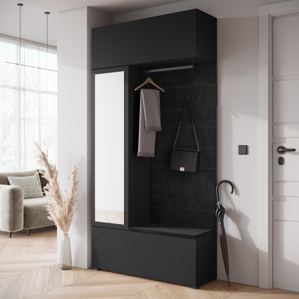 Zestaw nowoczesnych mebli systemowych JOHNY 2, składający się z siedmiu elementów o wymiarach;