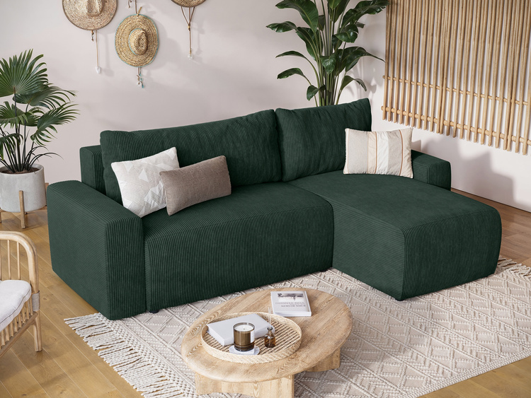 Opinie o Zielona sztruksowa rogówka do salonu z pojemnikiem PABLO MINI