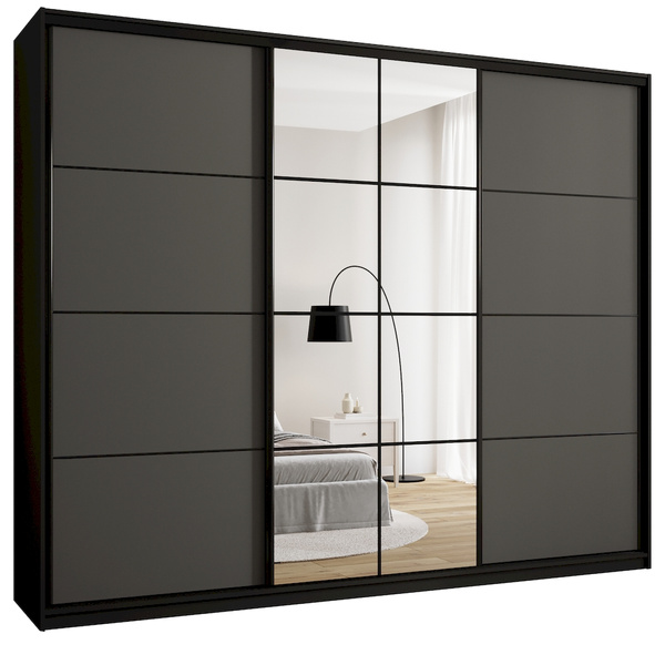 Szafy przesuwne FLORIS o szerokości 230 cm to idealne rozwiązanie do przechowywania garderoby. Drzwi przesuwne pozwalają zaoszczędzić miejsce, a wewnętrzny układ półek i drążków ułatwia organizację ubrań. Dostępność w kolorze białym i grafitowym daje możliwość dopasowania do różnych stylów aranżacyjnych.