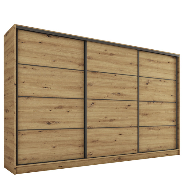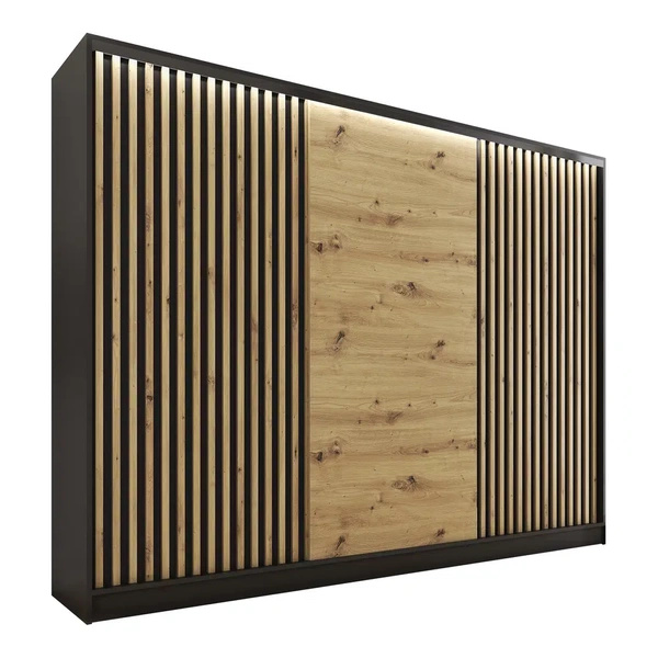 Kolekcja mebli systemowych QUANT to propozycja dla osób, które cenią połączenie ponadczasowego designu z praktycznymi rozwiązaniami. Wykonana z trwałej płyty laminowanej o grubości 16 mm i zabezpieczona obrzeżami ABS, gwarantuje odporność na codzienne użytkowanie. Charakterystyczne zestawienie koloru dąb artisan z czarnymi akcentami nadaje wnętrzu loftowy klimat, a wbudowane oświetlenie LED w ciepłej barwie wprowadza przytulny nastrój zarówno w dużych, jak i małych pomieszczeniach.