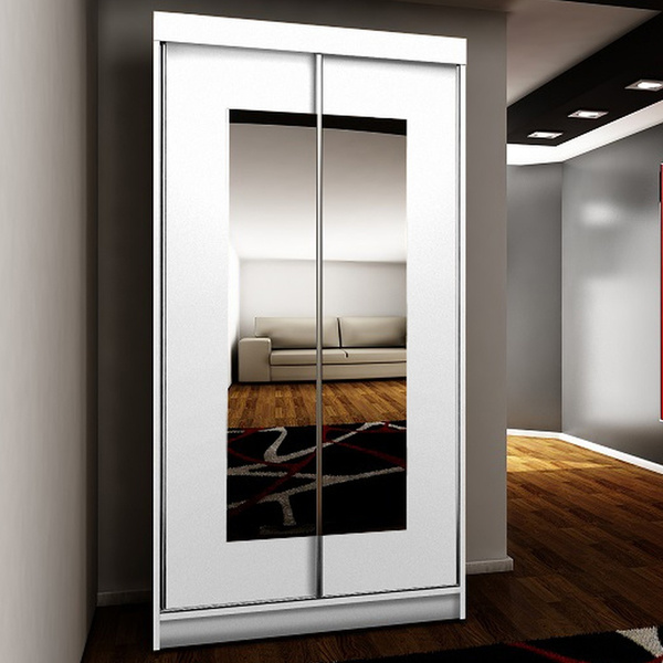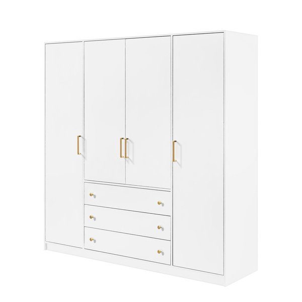Duża biała szafa 240 cm z lustrem i szufladami do sypialni BILL