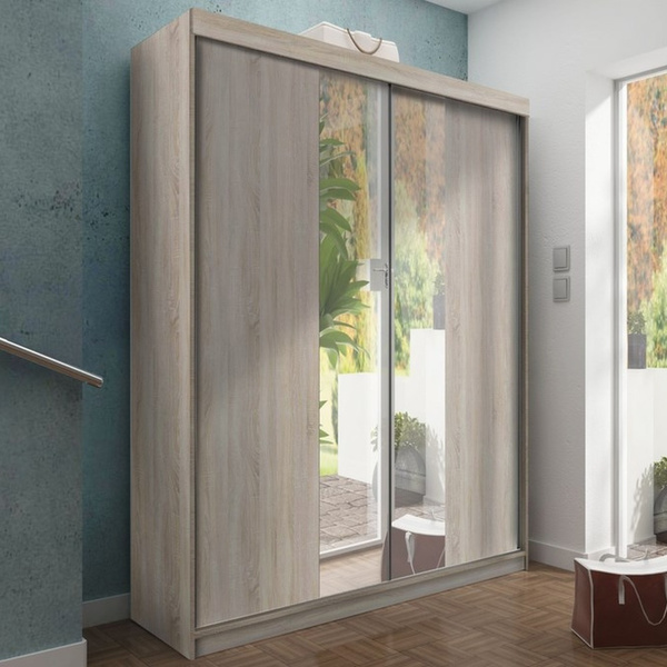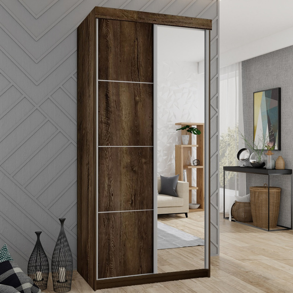 Grafitowa szafa 240 cm z lustrem i szufladami do sypialni BILL
