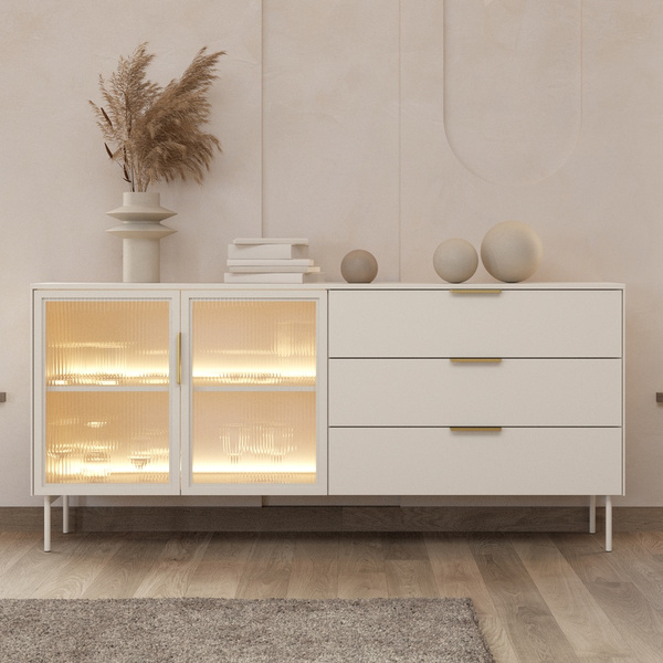 Trzydrzwiowa szafa z półkami do sypialni 150 cm szuflady SEVAS dąb artisan