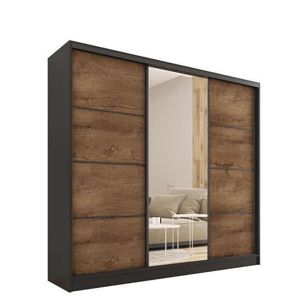 Trzydrzwiowa szafa przesuwna z lustrem 235 cm BEST dąb wotan