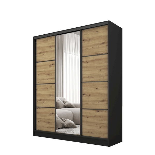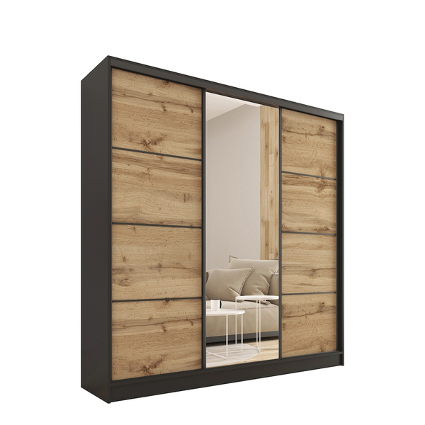 Szafa przesuwna z lustrem do sypialni 200 cm LOFT MAX grafit