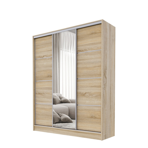 Szafa przesuwna z lamelami 203 cm z lustrami biały dąb wotan SAVINA