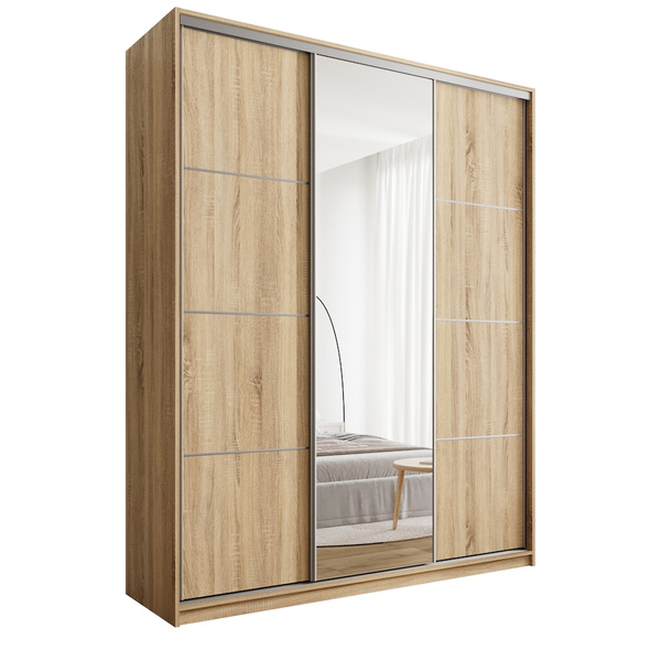 Trzydrzwiowa szafa przesuwna z lustrem 200 cm BEST dąb sonoma